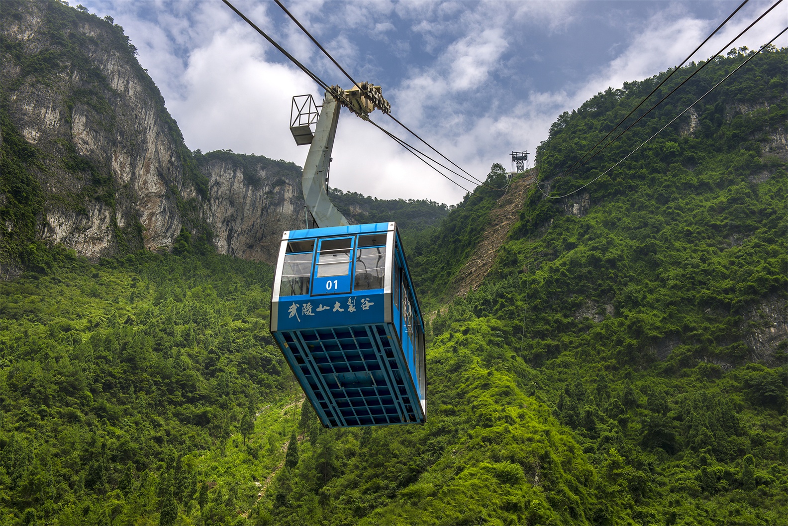 平安閣往復式索道為雙線雙承載往復式45+1人吊廂式索道,單向運輸能力7...